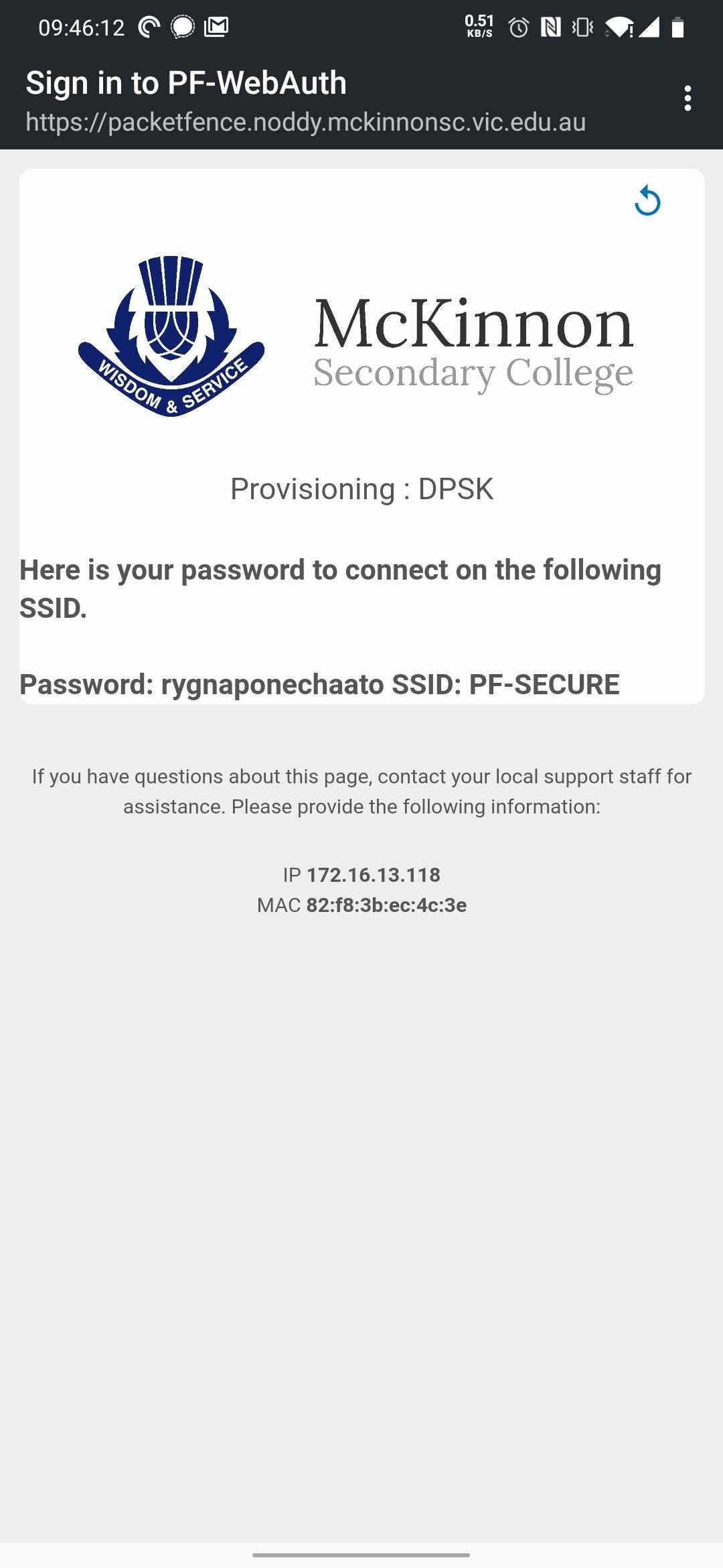 In the end, this is what the user experience looks like if I were to connect my phone using my student username and password.